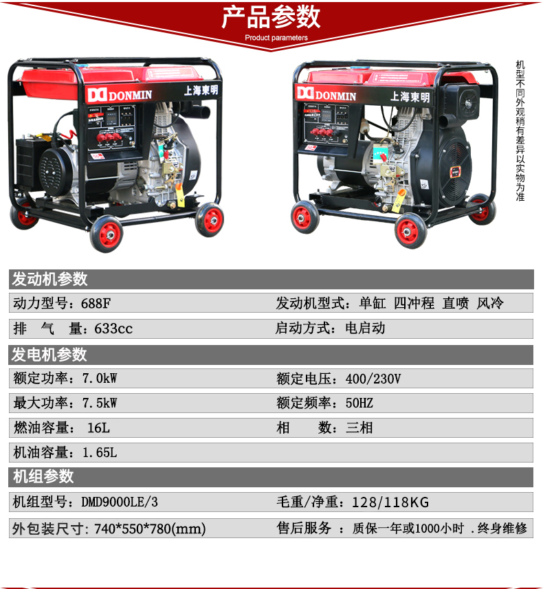 上海東明7KW / 7千瓦DMD9000LE/3 三相小型柴油發(fā)電機(jī)組